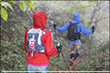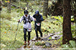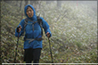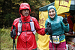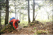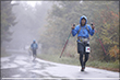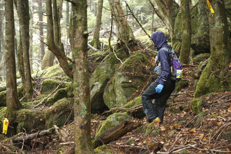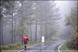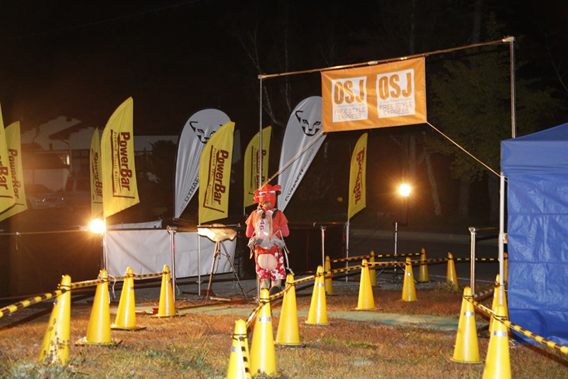 10月4日AM5:00 約70名のランナーが松原湖をスタートしました。天気は晴れているものの、ガスがかかり場所によっては肌寒いくらいですが、選手にとっては走り易いコンディションでありました。周回コースといっても、最高地点2,000メートルのニュウへ続くシャクナゲ尾根は苔と倒木の多い600メートルの急登で、ニュウを過ぎるとは全く走れないスリッピーでテクニカルな下り、さらにそれをつなぐ斜度のきついロードを林道は厳しい関門時間が歩くことを許しません。厳しいコースを体験してコースを熟知すればするほど、先のイメージが鮮明となり「周回」という重圧が選手を苦しめます。