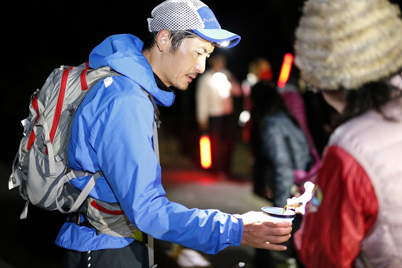 そんなOSJでもトップレベルのハードレースですが、完走率36%26名のランナーが、第1回大会のみごと完走者となりました。参加者からは、「コース上に交互すれ違いの区間もあるのでトップ選手や知り合いのランナーとも何度も顔会わせできるので、選手同士の励まし合いが力になった」とのこと。また選手同士だけなく、松原湖ではペーサーやサポートメンバーからもパワーをもらえます。エイドによっては5周回で計10回立ち寄るエイドもあり、エイドスタッフも自然と顔見知りになり応援を送ります。松原湖では小海町の住人によるのエイドステーションが36時間休みなく暖かいおそばを提供してくれます。参加者の中には、「UTMF天子山地に5回突っ込むようなコースだ」というほどの厳しいコースですが、ランナーの折れそうな心を支えるポイントも多数あるのがKOUMI100の魅力ではないでしょうか!