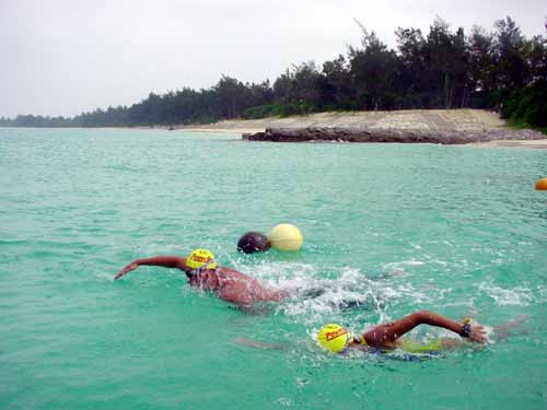 コース手前の折り返し。杉沢選手(左)のダイナミックなターン