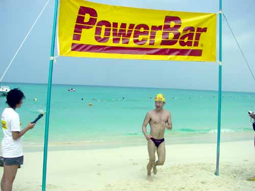 フィニッシュは海から上がった砂浜の上。少しきついけど最後はダッシュ