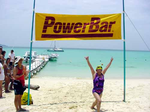 初めての海、そして、未知の距離1.5km。完泳にガッツポーズの近藤よしさん