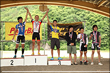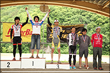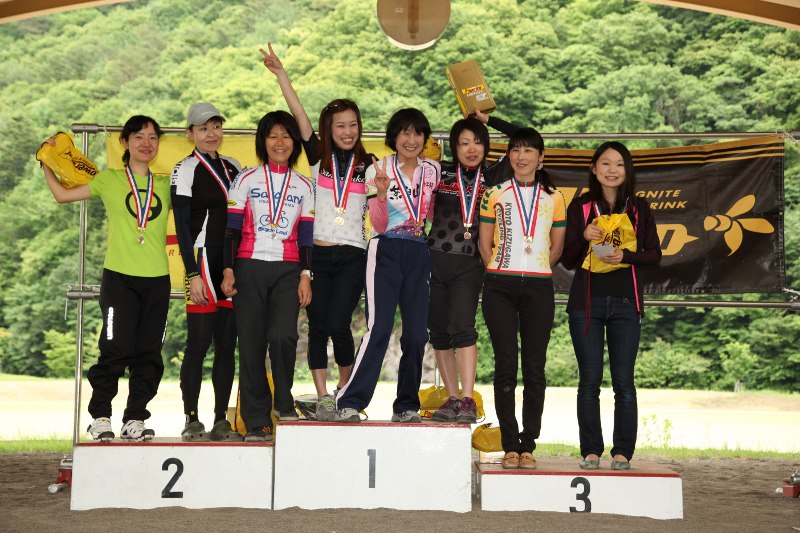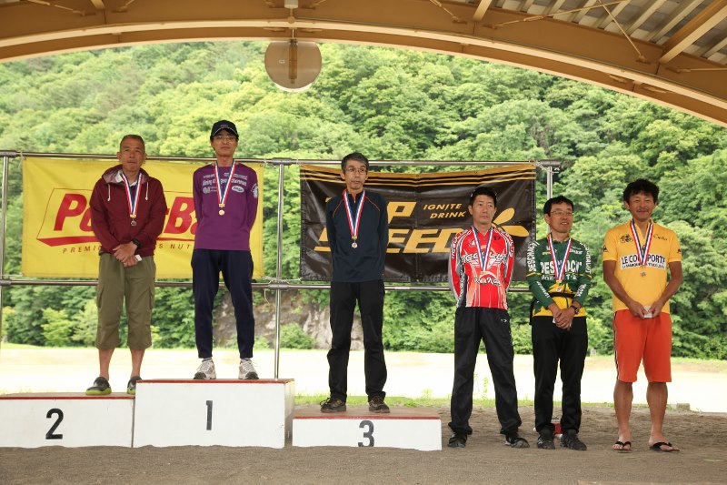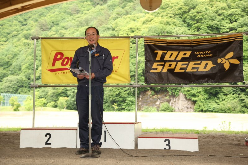 選手が登りきったところでペースカーを先頭にみんなでゆっくり下山。松原スポーツ公園まで戻ってきた後は表彰式を行いました。協賛各社から豪華賞品を提供していただきました。